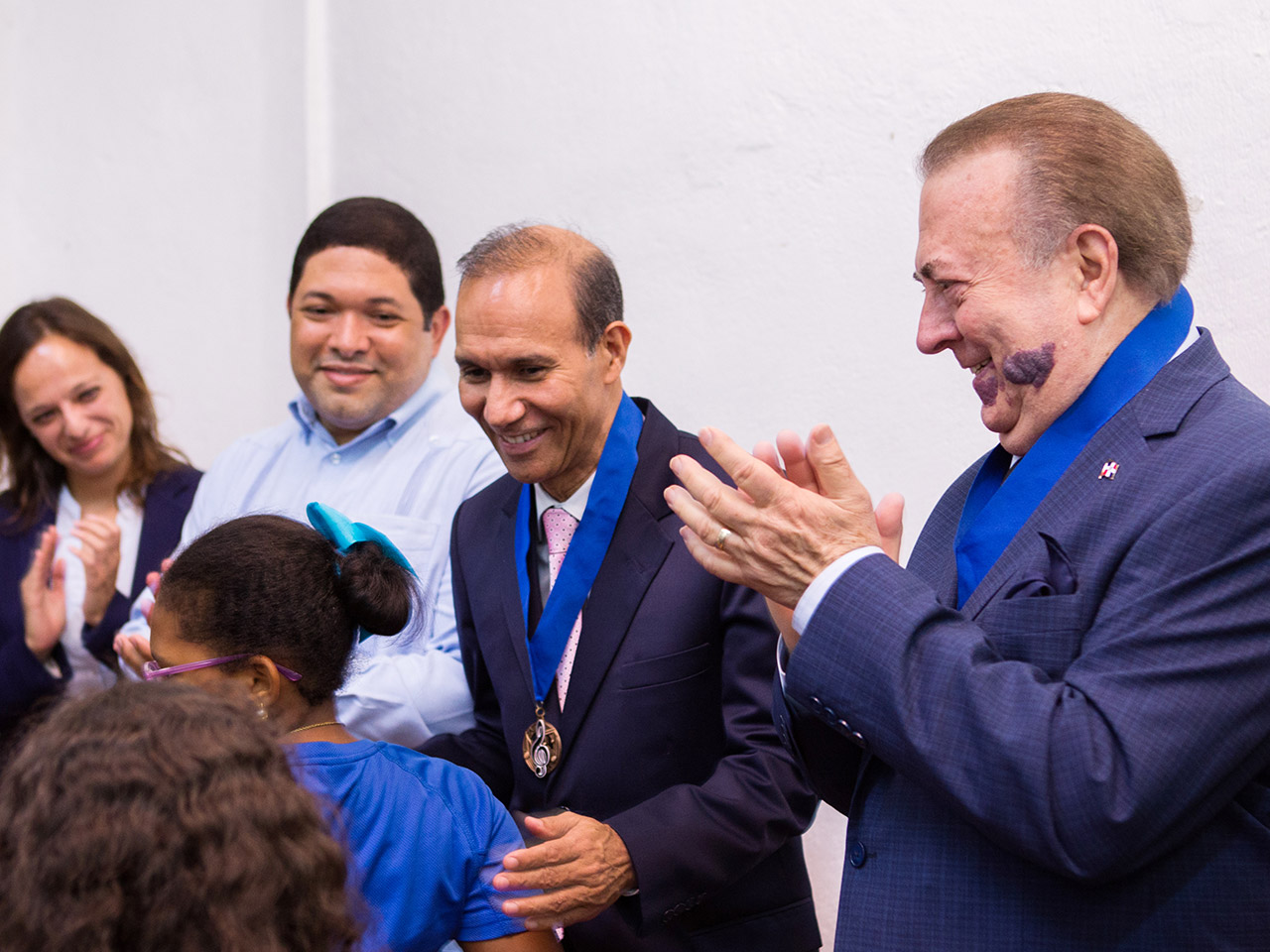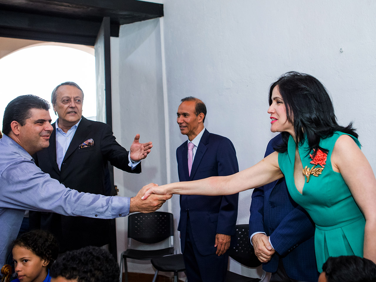14-06-2018: El pasado lunes tuvimos el gran honor de recibir en nuestro núcleo de la Zona Colonial de Santo Domingo, ubicado en la Logia Cuna de América, al Ministro de Cultura el Arquitecto Eduardo Selman, acompañado por el Ministro de Trabajo el Doctor Winston Antonio Santos Ureña. Durante esta visita y en presencia de varios miembros de la Junta Directiva de la Fundación (la Dra Marisol Vicens, los Sres Dominique Mey y Frank Ferandier-Sicard) pudieron asistir a un ensayo de nuestra orquesta sinfónica juvenil y también recibir la medalla de la fundación.